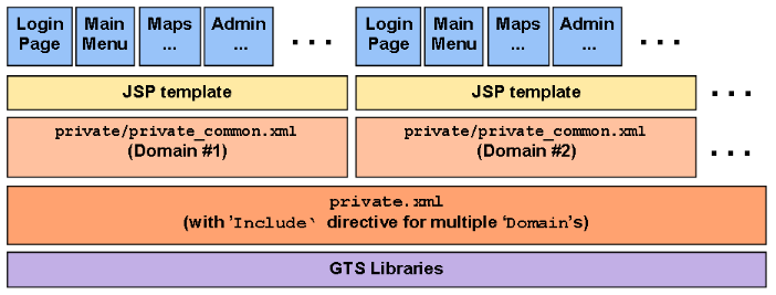 JSP Templates: The JSP (Java Server Pages) template defines the page 'outline' within which the various web pages will be displayed. The " JSPEntries" tag in the "private.xml" and/or